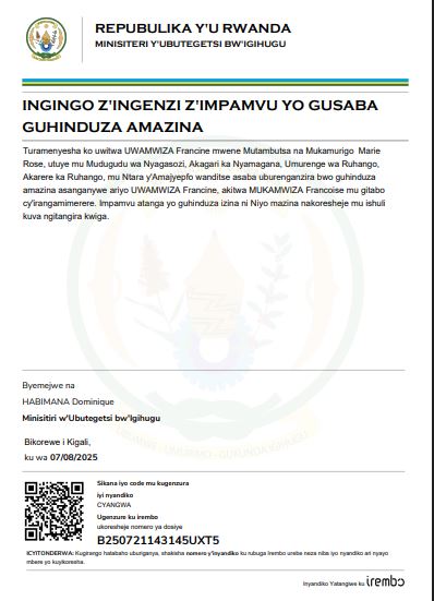 UWAMWIZA Francine yasabye guhindura amazina akitwa MUKAMWIZA Francoise