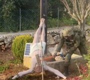Umusirikare wa Israel woherejwe ku rugamba mu majyepfo ya Liban, yagaragaye amenagura ikibumbano cy’ishusho ya Yezu yifashishije inyundo nini imena amabuye izwi nka ‘kinubi’.