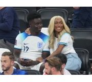 Umukunzi wa Bukayo Saka witwa Tolami Benson,yagaragaye mu Budage yagiye kumufana aho yari yambaye ikoti ryibutsa benshi ahazaza h’uyu mukinnyi ukiri muto.