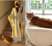 Umukinnyi wa filime Lupita Nyong’o ari gusabana n’injangwe aherutse gucirira ndetse ngo iri kumumara irungu yatewe n’umukunzi we.