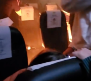 Umuriro wadutse mu ndege bituma amagana y’abagenzi bari bayirimo bavuza induru kubera ubwoba abandi bimuka mu byicaro byabo ubwo bari bategereje ko ihaguruka. Amashusho agaragaza abagenzi bafite...