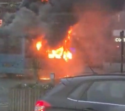 Imodoka yari itwaye abagenzi yaturitse ihita ifatwa n’inkongi y’umuriro nyuma gato y’uko abagenzi babonye ko ibintu bitagenda neza bagakizwa n’amaguru. Amashusho y’iyi bisi iri gushya...
