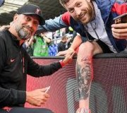 Nyuma yo kumuha ibyishimo bisendereye, umufana wa Liverpool yishushanyijeho Klopp ku kuguru ndetse kuri uyu wa Gatatu uyu mutoza yasinye kuri iyo shusho ye uyu mufana yishyizeho. Jurgen Klopp...
