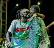 Umuhanzi Weasel [Goodlyfe] yafotowe asoma mukuru we Jose Chameleone ku munwa ubwo bari ku rubyiniro mu gitaramo bakoreye mu Burundi bicisha benshi ururondogoro bibaza niba bifitemo akantu...