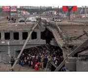 Mu ifoto ibabaje yacicikanye hirya no hino ku isi,Abanya Ukraine benshi bagaragaye bihishe munsi y’ikiraro cyangiritse,bahunga ibitero by’indege by’u Burusiya. Abaturage babarirwa mu magana...
