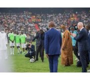 IFOTO Y’UMUNSI: Perezida Kagame yabaye mu ba mbere batereye umupira muri Stade Olympique de Diamniadio