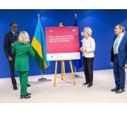 Perezida wa Repubulika Paul Kagame na Perezida wa Komisiyo y’Umuryango w’Ubumwe bw’u Burayi (EU) Ursula von der Leyen, bifatanyije na Perezida wa Banki y’u Burayi y’Ishoramari Nadia Calviño...