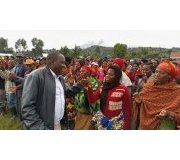 Minisitiri w’Ubutegetsi bw’Igihugu, Gatabazi Jean Marie Vianney yagaragaye asuhuza umuturage mu ndamukanyo izwi nka Censi ubwo yari yaganirizaga abaturage bo mu Karere ka Musanze mu Murenge wa Nyange.