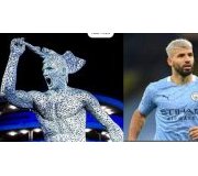 Manchester City yamuritse ikibumbano(Statue) cya Sergio kun Aguero bishimira imyaka icumi ishize Aguero atsinze igitego cyatumye Manchester City inganya amanota na Manchester United, ariko Man City...