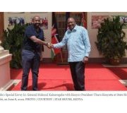 Perezida wa Kenya Uhuru Kenyatta, kuri uyu wa gatatu yakiriye mu biro bye Lt-Gen Muhoozi Kainerugaba, umuhungu w’umukuru w’igihugu cya Uganda Yoweri Museveni, amuzaniye ubutumwa bwihariye.