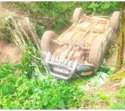 Imodoka nto ifite plaque RAE 873 F yari itwawe na Nizeyimana Jean Bosco, yaguye munsi y’umukingo muremure, k’ubw’amahirwe abari bayirimo bose bararokoka.