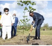 Perezida w’u Rwanda, Paul Kagame uri muruzindo rw’akazi mu gihugu cya Barbados yateye igiti cy’urwibutso mu mu busitani bw’iki gihugu buzwi ku izina rya ‘Barbados National Botanical Gardens’ ....