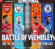 This weekend football fans will enjoy the Semi Finals of the Emirates FA CUP. Arsenal vs Manchester City match will be on 18 July 2020 at 20:45 CAT on ST World Football...