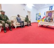Perezida wa Centrafrique, Faustin-Archange Touadéra, yakiriye Umugaba Mukuru w’Ingabo zirwanira ku Butaka, Maj Gen Vincent Nyakarundi n’itsinda bari kumwe, bagirana ibiganiro.