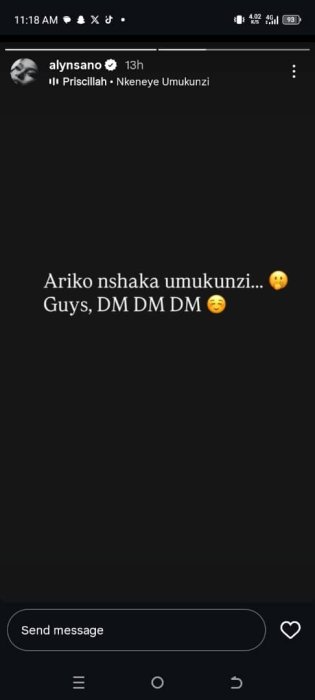 Ni mu butumwa yanyujije kuri Instagram ye ahashyirwa ubutumwa bumara amasaha 24 agaragaza icyifuzo cye.