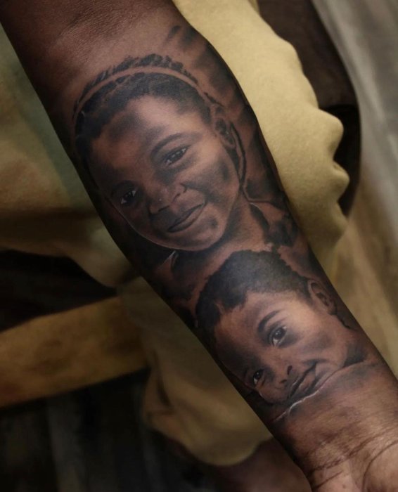 Bruce Melodie yashyizeho Tatto igaragaza amasura y’abakobwa be(AMAFOTO)