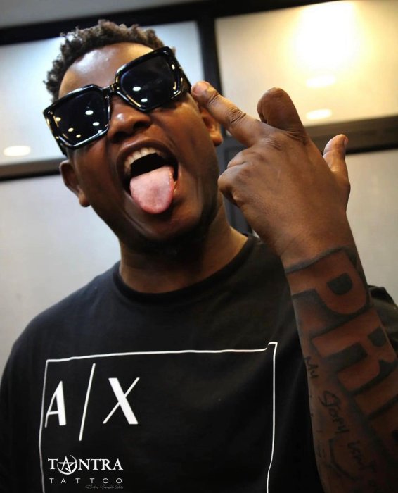 Ni Tatoo yashyize ku kaboko ke nyuma y’imininsi mike asohoye indirimo’Alaise’ yakoranye na Innos B uturuka muri Repubulika iharanira demokarasi ya Congo.