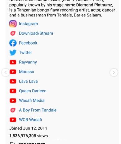 Nkuko imibare ibigaragaza Diamond Platnumz mu mwaka umwe gusa kuva mu Ukwakira 2021 yungutse abantu barenga miliyoni 417 barebye ibihangano byose amaze gushyira ku muyoboro bwite (Channel) wa YouTube.