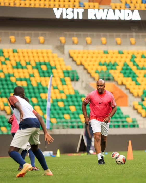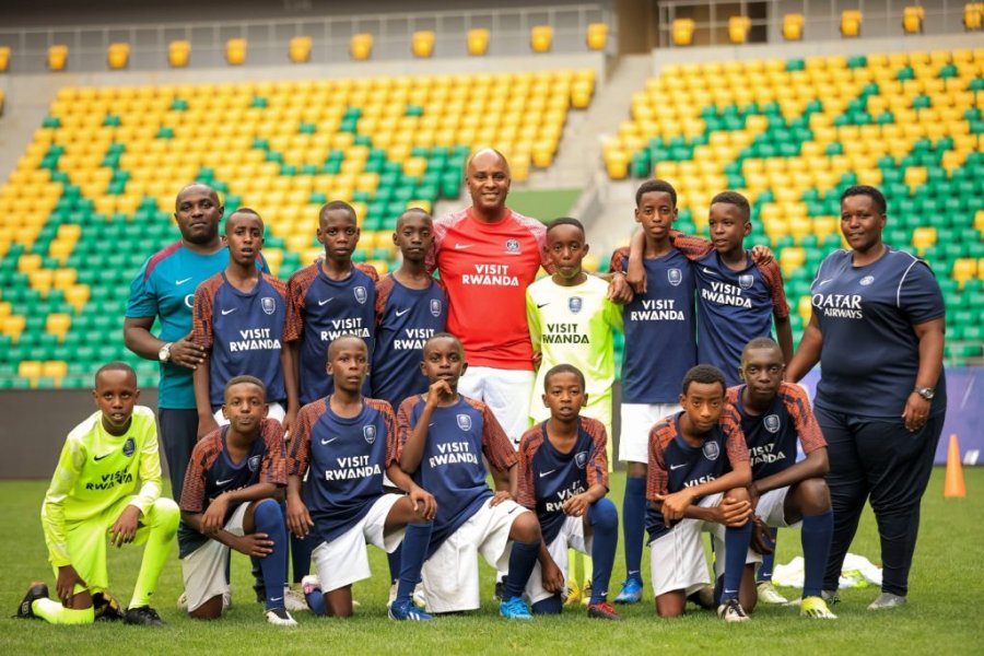 Domi usanzwe ari umujyanama mu bya tekiniki muri Academy ya PSG yo muri Qatar yakoranye imyitozo n’abana barerwa muri iri rerero ryigisha umupira w’amaguru rya Paris Saint Germain kuri Stade Amahoro abagira inama zabafasha gutera imbere mu mupira w’amagaru.