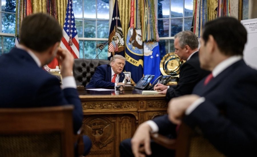 Iki gikombe cyagaragaye mu mashusho ya nyuma y’inama yamuhuje na Perezida wa Ukraine, Volodymyr Zelensky n’abayobozi batandukanye b’i Burayi bari bajyanye muri Leta Zunze Ubumwe za Amerika.
