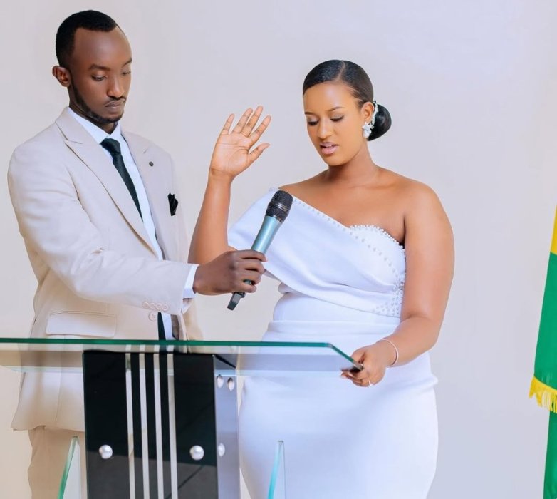 Ingabire Diane wambitswe ikamba rya ‘Miss Congeniality’ muri Miss Rwanda 2020, ku wa 21 Kanama 2025 yasezeranye imbere y’amategeko n’umusore bitegura kurushinga.