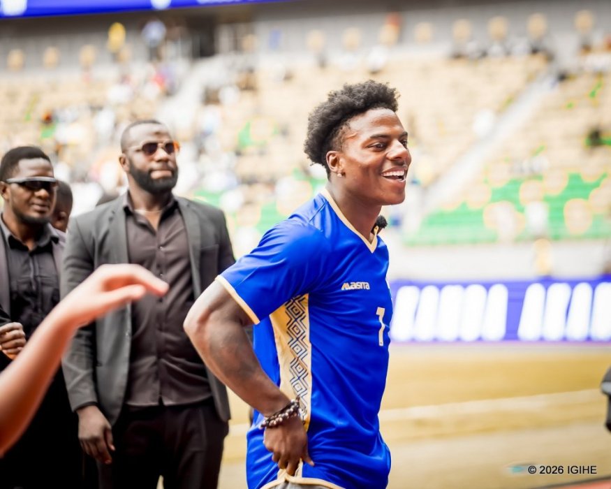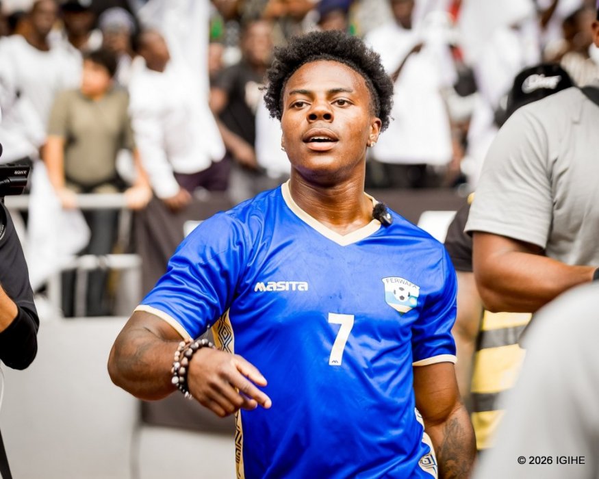Umunyamerika Darren Jason Watkins Jr. wamamaye nka IShowSpeed, uri mu Rwanda, yageze muri Stade Amahoro, asusurutsa abafana mu mwanya muto yahamaze.