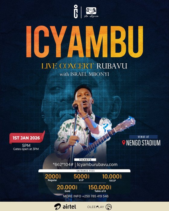 Israel Mbonyi yemeje igitaramo agiye gukorera mu Karere ka Rubavu ku wa 1 Mutarama 2026, iki kikazaba gikurikiye icyo uyu muhanzi ateganya gukorera muri BK Arena ku wa 25 Ukuboza 2025.