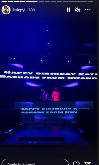 Kate ubwo yinjiraga ahabereye ibirori bye yakiriwe nk’umwamikazi ndetse mu mashusho yagaragaraga aho hantu nayamwifurizaga isabukuru nziza mu butumwa bwagiraga buti"Isabukuri nziza Kate Bashabe guturuka mu Rwanda".