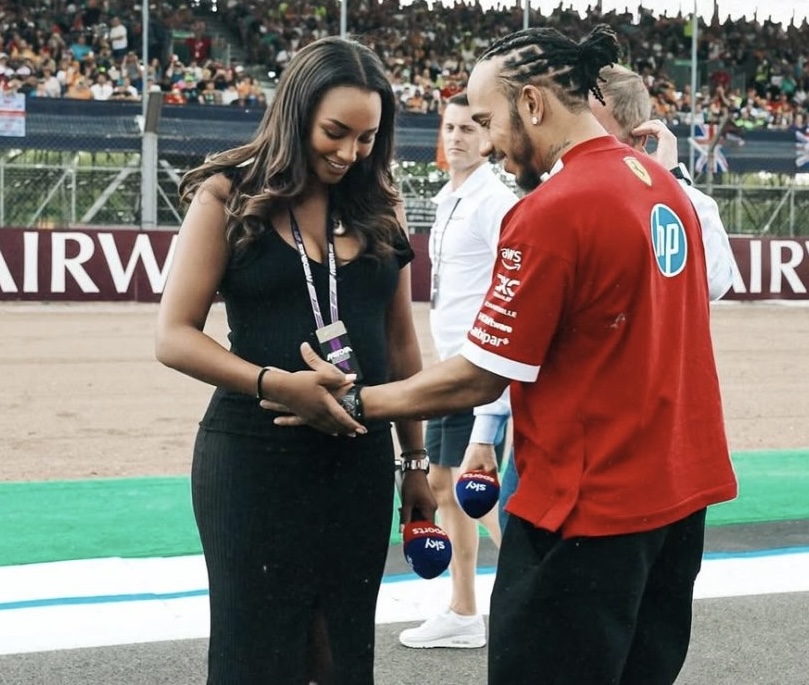 Lewis Hamilton ufite amateka akomeye mu mukino wa Formula 1, yagaragaye afashe ku nda y’Umunyarwandakazi, Naomi Schiff, umenyerewe mu mukino wo gusiganwa mu modoka ndetse no kuwusesengura nk’umunyamakuru kuri Sky Sports, wenda kwibaruka.