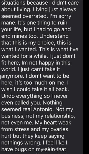 Mu butumwa buteye agahinda Raven yanditse mbere y’uko yikura mu buzima yiseguye k’umukunzi we ndetse avuga ko kuba agiye nta muntu numwe abishinja ahubwo ari uko yari ananiwe muri we.