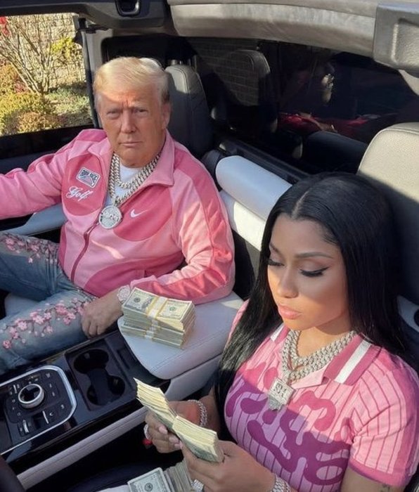 Onika Tanya Maraj uzwi cyane nka Nicki Minaj, yasangije abamukurikirana amafoto yakozwe n’ubwenge buhangano (AI) amugaragaza ari kumwe na Perezida wa Leta Zunze Ubumwe za Amerika, Donald Trump.