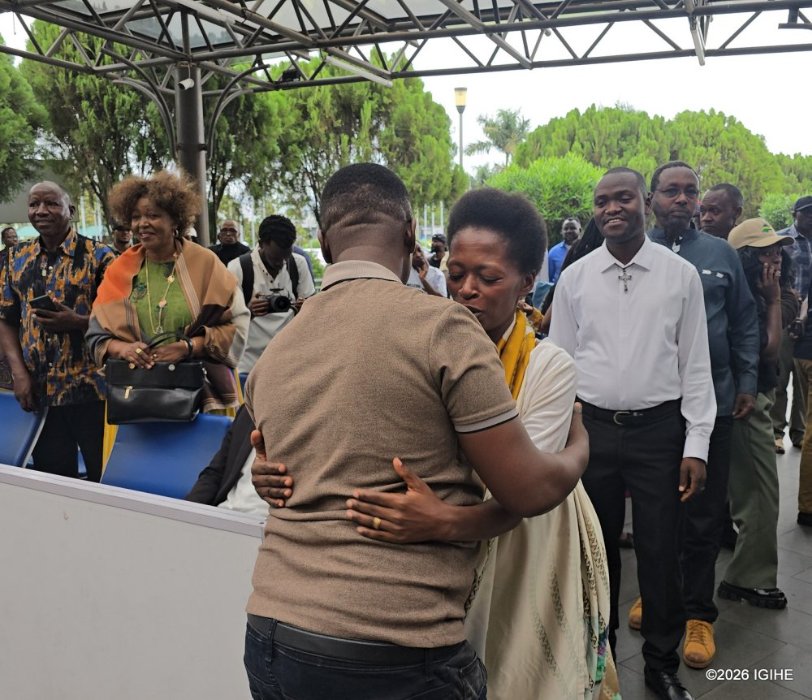 Kalisa Ernest wamamaye nka Samusure, yageze ku Kibuga Mpuzamahanga cy’Indege cya Kigali i Kanombe kuri uyu wa 12 Gashyantare 2026.