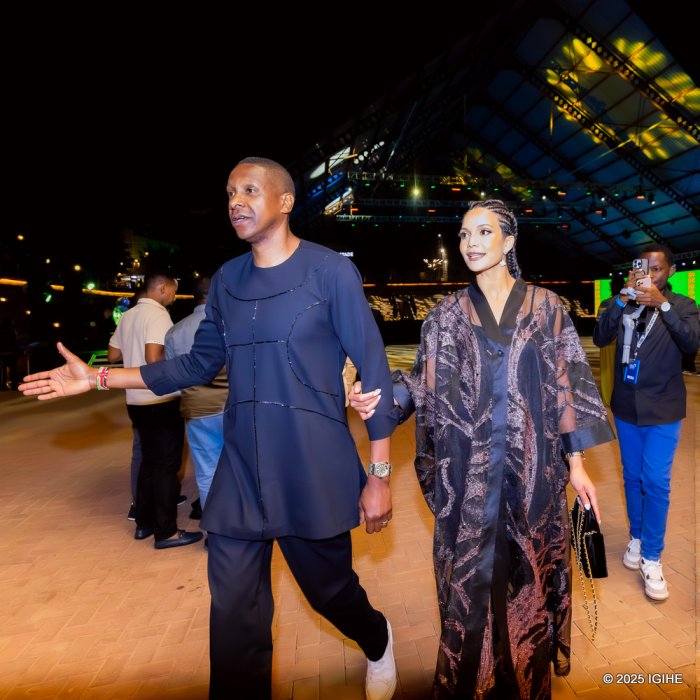 Ange Kagame n’umugabo we, Betrand Ndengeyingoma, bari mu bitabiriye igitaramo cy’imideli cyabaye mu iserukiramuco rya ‘Giants of Africa’ cyagaragayemo imyambaro y’abahanzi b’imideli bakomeye muri Afurika, mu gihe Tekno Miles uri mu bakunzwe muri Nigeria yatunguranye aririmbira abari ahabereye igikorwa.