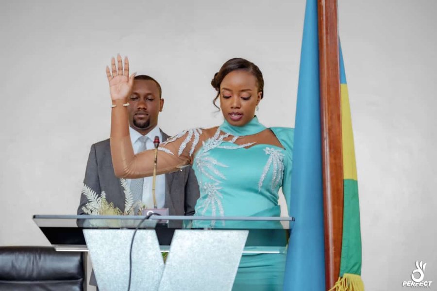Umunyamakuru Abayezu Marie Assumpta, w’Ikigo cy’Itangazamakuru,RBA, yasezeranye imbere y’amategeko na Niyobuhungiro Caleb, wari waramwambitse impeta.