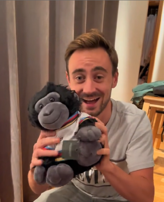 Umunyamakuru w’Umufaransa, Titouan Laurent, yagaragaje ko ari mu byishimo bidasanzwe nyuma yo kongera kubona igipupe cy’ingagi (Ganza) yakuye i Kigali ubwo yari yitabiriye Shampiyona y’Isi y’Amagare.