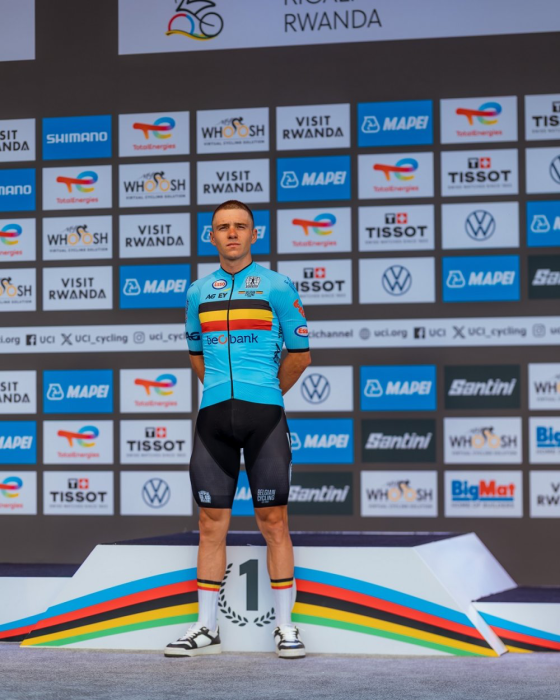 Umubiligi Remco Evenepoel wabaye umukinnyi wa gatatu mu mateka wegukanye Shampiyona y’Isi y’Amagare mu gusiganwa n’ibihe inshuro eshatu yikurikiranya, ni umwe mu bakinnyi banyuze mu yindi mikino irimo n’umupira w’amaguru.