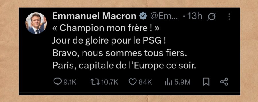 2. Perezida w’Ubufaransa Emmanuel Macron yifashishije urukuta rwe rwa X yavuze ko ari umunsi w’Instinzi ku ikipe ya PSG ndetse yongeraho ko abafaransa bose ibateye ishema.