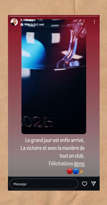 3. Rutahizamu Kylian Mbappe wavuye muri iyi kipe mu mpeshyi ya 2024, na we abinyujije ku rukuta rwe rwa Instagram yavuze ko ari umunsi ukomeye ndetse ko ikipe ya PSG yatwaye igikombe ibikwiye.