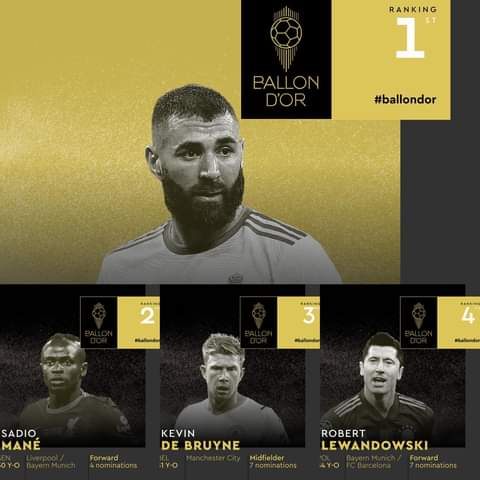 Benzema abaye Umufaransa wa 5 utwaye iki gihembo,nyuma ya Raymond Kopa,Michel Platini,Jean-Pierre Papin na Zinedine Zidane