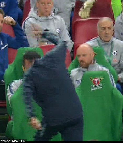 Sarri wagaragaye afite uburakari bwinshi ndetse ashaka gusohoka ku kibuga,ahita agaruka yavuze ko atumvikanye neza n’umunyezamu we kuko yari aziko yavunitse.