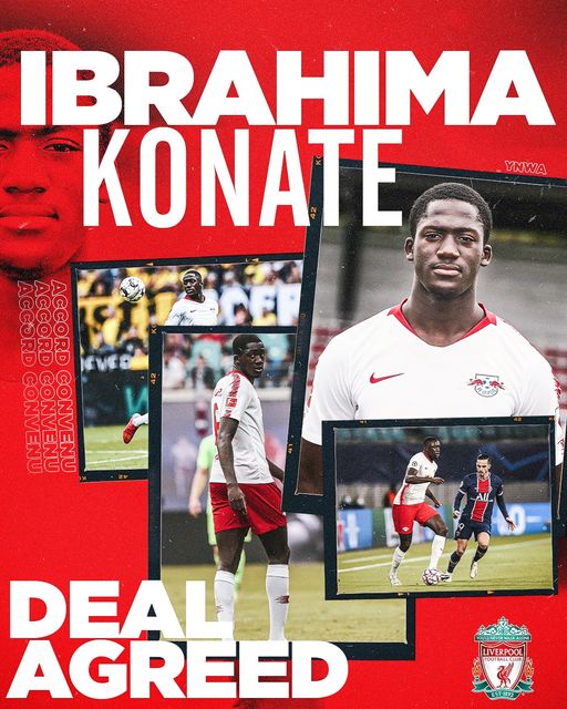 Ikipe ya Liverpool yatangaje ko yasinyishije myugariro w’Umufaransa w’imyaka 22 witwa Ibrahima Konaté wakiniraga ikipe ya RB Leipzig amasezerano y’igihe kirekire ku kayabo ka miliyoni 35 z’amapawundi.