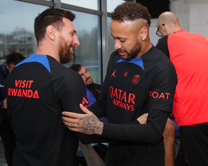 Mu mafoto yagiye hanze,yagaragaje Messi asuhuzanya n’abakinnyi ba PSG barimo Neymar Jr basanzwe ari inshuti magara.