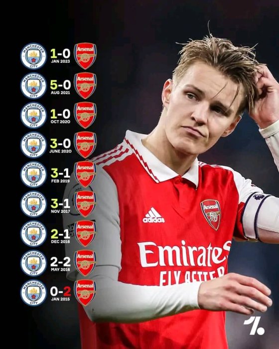 Arsenal yatsinzwe imikino irindwi yose iheruka guhuramo na Manchetser City ndetse ntirayitsinda muri Premier League kuva mu 2015.