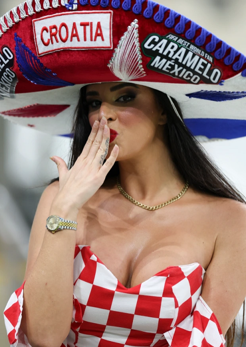 Miss Croatia wahogoje benshi mu gikombe cy’isi 2022 yagaragaye mu isura nshya ku mukino w’Ubufaransa na Maroc [AMAFOTO]