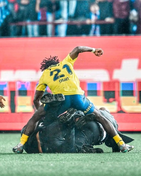 Myugariro w’umunya-Nigeria, Bright Osayi Samuel yakubise umufana wa Trabzonspor winjiye mu kibuga gusagarira bagenzi be bakinana muri Fenerbahçe.