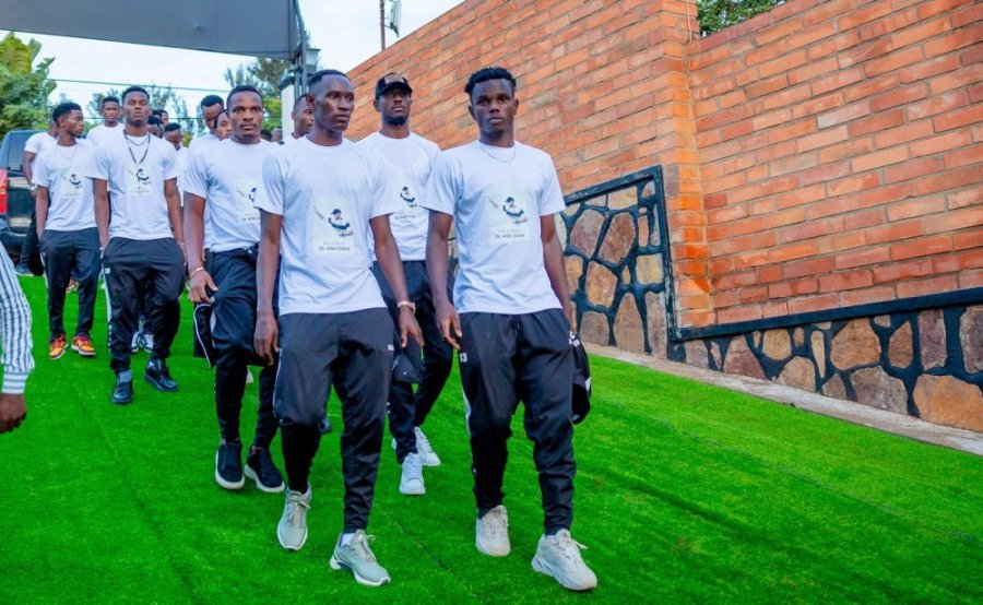 Abafana ba APR FC n’ubuyobozi bw’Ikipe bashyikirije impano umuryango wa Dr Adel Zrane uhagararariwe n’umugore we, Maha Baer na murumuna we, Amin Zrane.