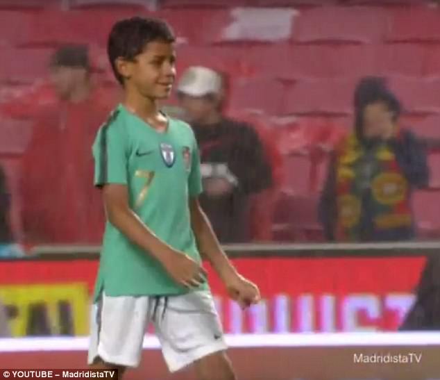 Uyu mwana w’umuhungu uherutse guhembwa nk’umukinnyi watsinze ibitego byinshi ku ishuli yigaho,yatunguye benshi mu banyamakuru n’abafana basigaye kuri stade ubwo Portugal yatsindaga Algeria ibitego 3-0,atsinda ibitego 2 bisa neza nicyo se yatsinze Juventus.