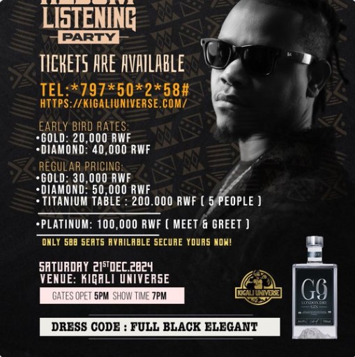 Kwinjira muri iki gitaramo ni amashilingi ya Uganda ibihumbi 100, miliyoni 1.2 ku meza y’abantu batanu ndetse na miliyoni ebyiri ku meza y’abantu umunani.