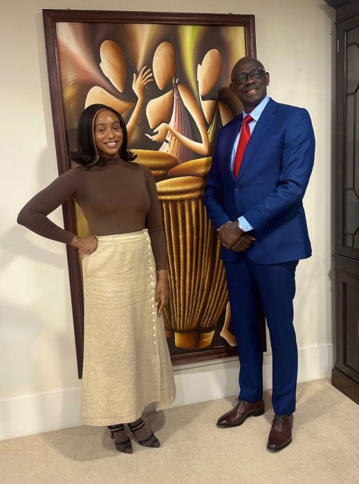 Mu butumwa yanyujije ku mbuga nkoranyambaga akoresha, DJ Cuppy yagaragaje ko yishimiye gusura Ambasade y’u Rwanda mu Bwongereza ndetse akagirana ibiganiro na Ambasaderi Johnston Busingye.