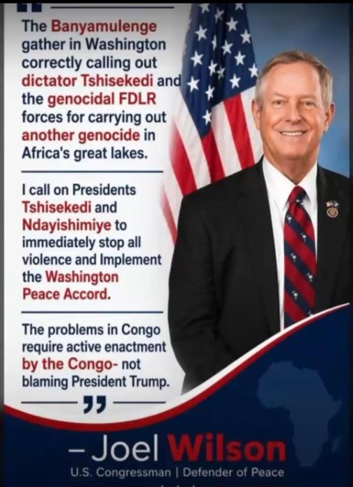 Mu butumwa bwe, Joe Wilson yanenze ubuyobozi bwa Perezida Félix Tshisekedi, ashinja ubutegetsi bwa Kinshasa kudafata ingamba zihagije zo gukemura ikibazo cy’umutekano gikomeje gufata indi ntera mu burasirazuba bw’igihugu.